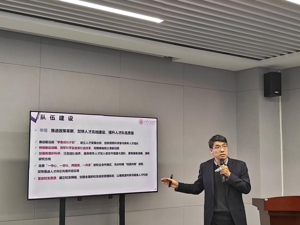 学院党委副书记、院长赵永席代表领导班子从党的建设、学科建设、队伍建设、科学研究和人才培养等五个方面对学院工作进行了总结报告,并进行了个人述职述廉。他表示,2024年学院将在把握好“选人用人”这个发展的决定性因素的基础之上,通过引领基础研究和自由探索的双擎驱动下,以综合改革为基本线索,推动完善教师人事体制改革、研究生教育改革、学科交叉中心建设等重点工作,并希望学校领导干部努力工作,确保学院继续保持稳步提升的良好局面。