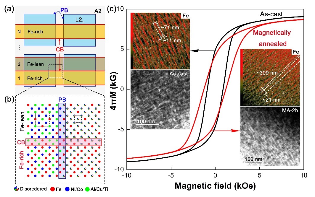 1 层级非均质纳米结构Fe-Co-Ni-Al-Cu-Ti高熵合金的化学各向异性与硬磁性