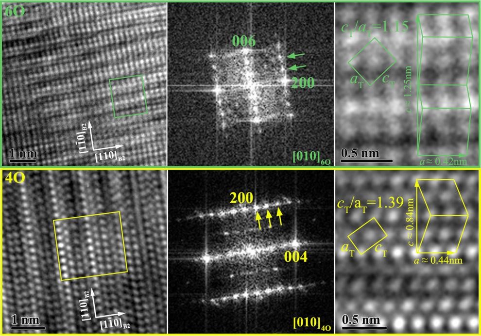 2 Ni-Mn-Ti合金6O中间相与4O马氏体相的原子结构:基本单元的四方度差异显著