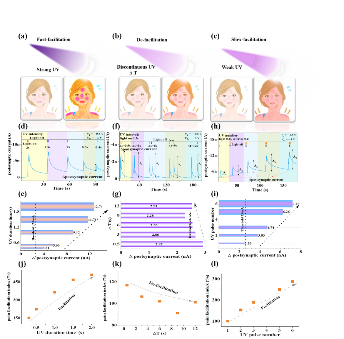 该成果以《增强的多波长响应柔性突触晶体管用于人类皮肤晒伤模拟和神经计算》(Enhanced Multi-wavelength Response of Flexible Synaptic Transistors for Human Sunburned Skin Simulation and Neuromorphic Computation)为题发表于材料科学领域顶级期刊《先进材料》(Advanced Materials),论文第一单位为必赢与电力设备电气绝缘国家重点实验室,第一作者为西安交通大学bwin博士生王欣,鲁广昊教授为本论文通讯作者。