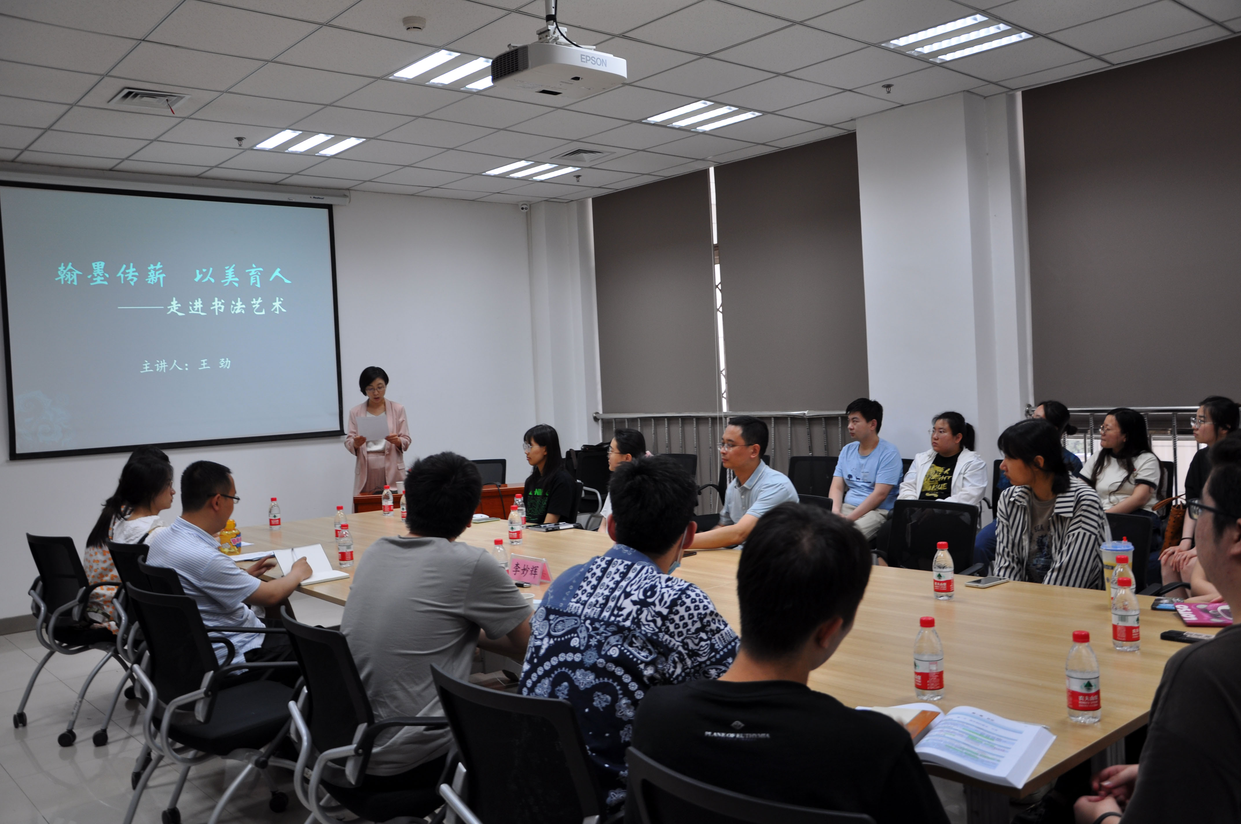 6月15日下午,bwin邀请人文学院中国书法系副教授、人文学院党委副书记王劲在曲江校区西二楼A103会议室作题为《翰墨传薪 以美育人——走进书法艺术》的讲座。讲座由bwin党委副书记李妙辉主持,学院师生共同聆听。