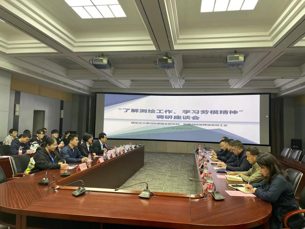 参观过后,双方开展“了解测绘工作 学习劳模精神”主题座谈交流会,陕西测绘地理信息局工会主席王世强对测绘局的基本情况进行介绍。