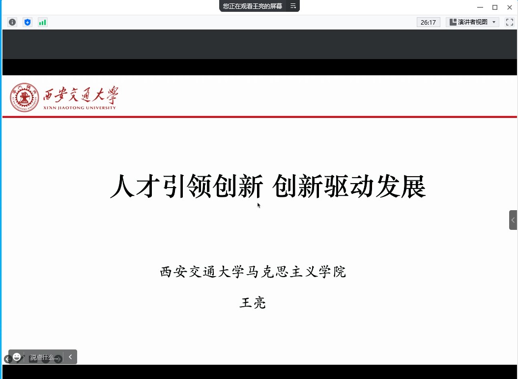 会议邀请马克思主义学院副教授王亮作题为《人才引领创新 创新驱动发展》的专题报告,他结合党的二十大精神分别从科学救国、向科学进军、科学技术是第一生产力、创新驱动发展四个方面,讲述了中国科技发展的四个时期,阐释了顶层设计在演变过程中发挥的主导作用,强调要深刻把握科技发展的新任务新要求。